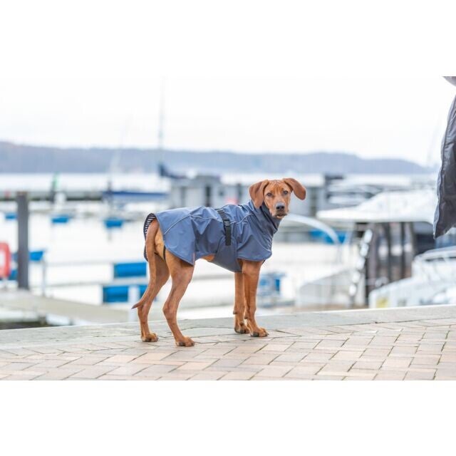 Deze regenjas voor honden is een perfecte jas voor wanneer het een regenachtige dag is maar nog wel warm.